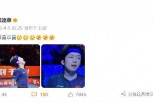著名中国香港影星任达华在个人微博上晒出自己观看王楚钦比赛的照片,并配文写道:恭喜恭喜。之后,王楚钦点赞了这一社媒。