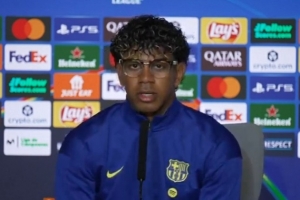 体育资讯4月13日讯 北京时间4月15日3:00,巴萨将在欧冠1/4决赛次回合客场挑战马竞,首回合巴萨0-2落败。赛前,巴萨前锋亚马尔出席新闻发布会。其中他谈到了自己的偶像内马尔。