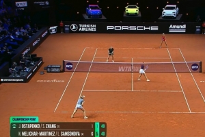 体育资讯4月19日讯 WTA500斯图加特站双打决赛,头号种子张帅/奥斯塔彭科0-2不敌4号种子梅里查尔/萨姆索诺娃,夺得本站亚军。