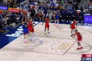 GIF-约基奇背身单打巴恩斯转身上篮被直接帽下