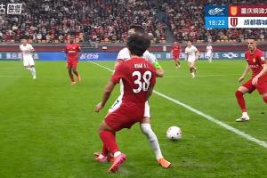 比赛第18分钟,韦世豪抢球踩到阮奇龙脚背,裁判向其出示黄牌。