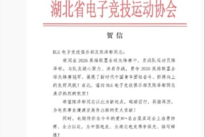 体育资讯3月23日讯 媒体人王玮晨晒出湖北省电竞协会祝贺信: