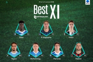 体育资讯3月24日讯 今日,意甲官方公布了联赛第30轮最佳11人阵,伊尔迪兹、拉比奥特、麦克托米奈、皮奥·埃斯波西托等在列。